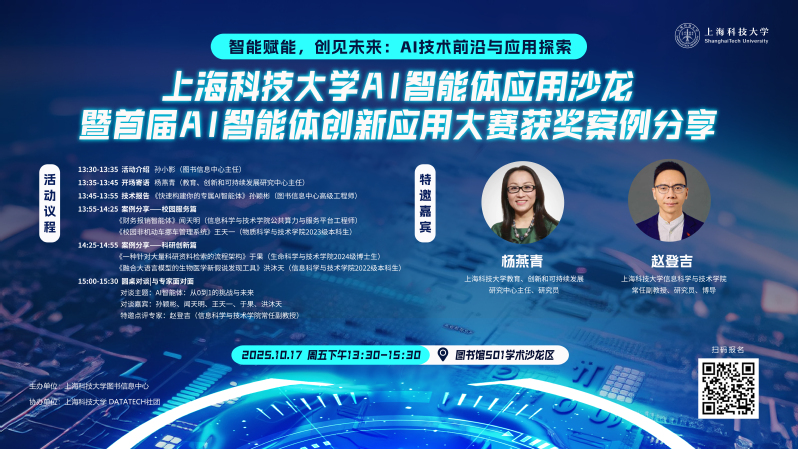 主题:上海科技大学AI智能体应用沙龙暨首届AI智能体创新应用大赛获奖案例分享会