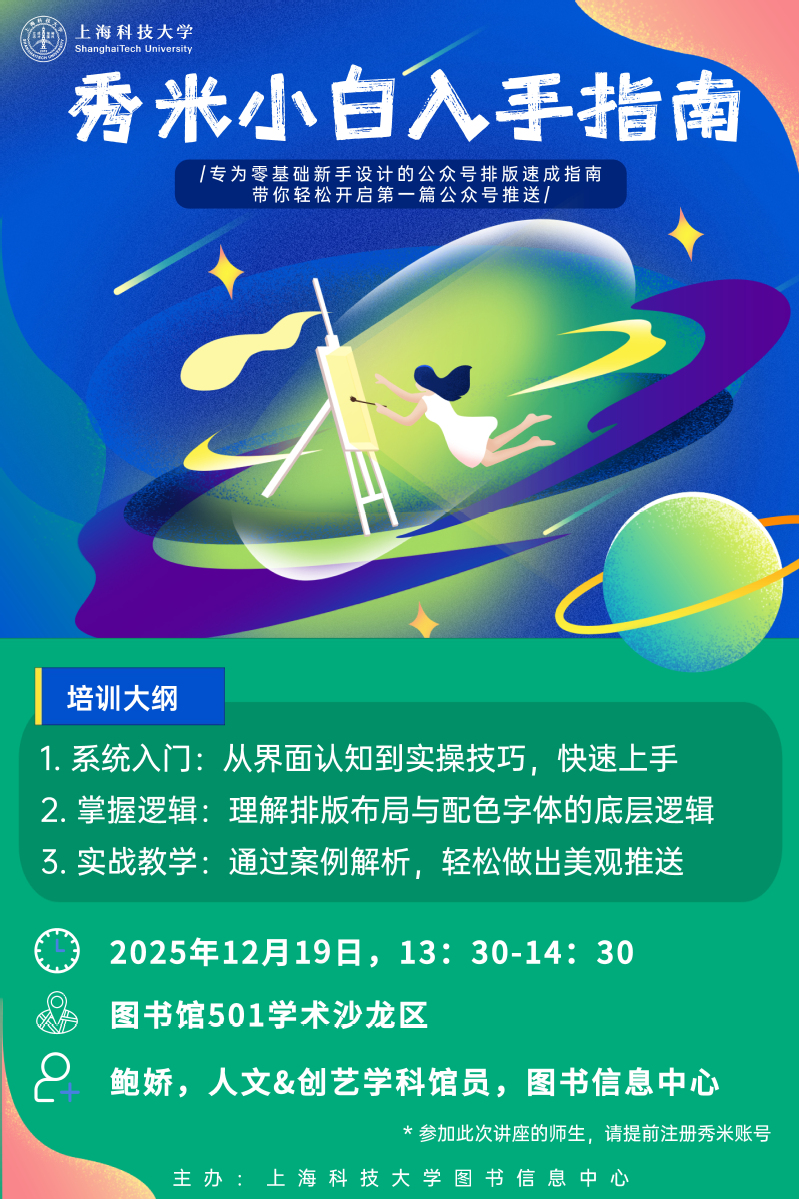 主 讲 人:鲍娇,人文&创艺学科馆员,图书信息中心