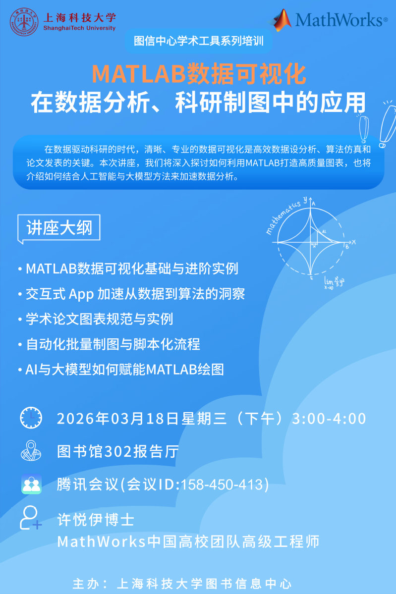 在数据驱动科研的时代,清晰、专业的数据可视化是高效数据分析、算法仿真和论文发表的关键。本次讲座,我们将深入探讨如何利用MATLAB打造高质量图表,也将介绍如何结合人工智能与大模型方法来加速数据分析。