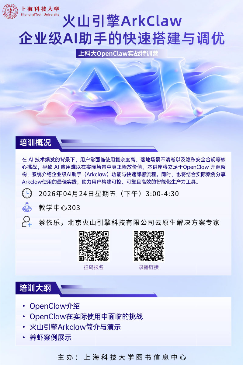 AI 技术爆发的背景下,用户常面临使用复杂度高、落地场景不清晰以及隐私安全合规等核心挑战,导致 AI 应用难以在实际场景中真正释放价值。本讲座将立足于OpenClaw 开源架构,系统介绍企业级AI助手(Arkclaw)功能与快速部署流程。同时,也将结合实际案例分享Arkclaw使用的最佳实践,助力用户构建可控、可靠且高效的智能化生产力工具。